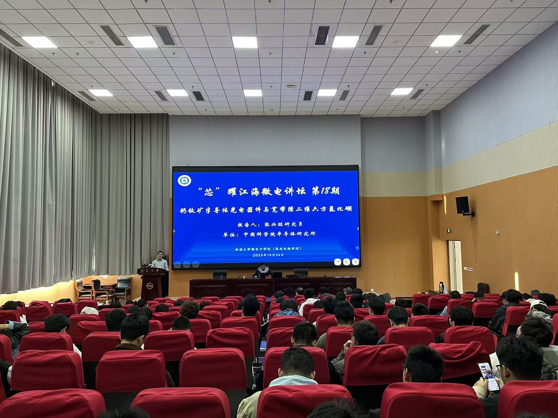 10月24日下午,中国科老虎机线上 半导体研究所研究员、博士生导师张兴旺应邀做客我院“芯”耀江海微电讲坛第18期,作了题为《钙钛矿半导体光电器件与宽带隙二维六方氮化硼》的学术报告。