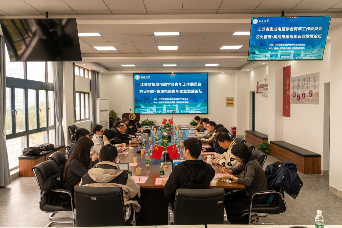 11月9日下午,由江苏省集成电路学会青年工作委员会主办、老虎机线上娱乐平台 承办的“芯火相传・集成电路青年职业发展论坛”在我院顺利举行。论坛采用线上线下相结合的方式,吸引了众多集成电路领域的专家学者、企业代表及青年学子参与。