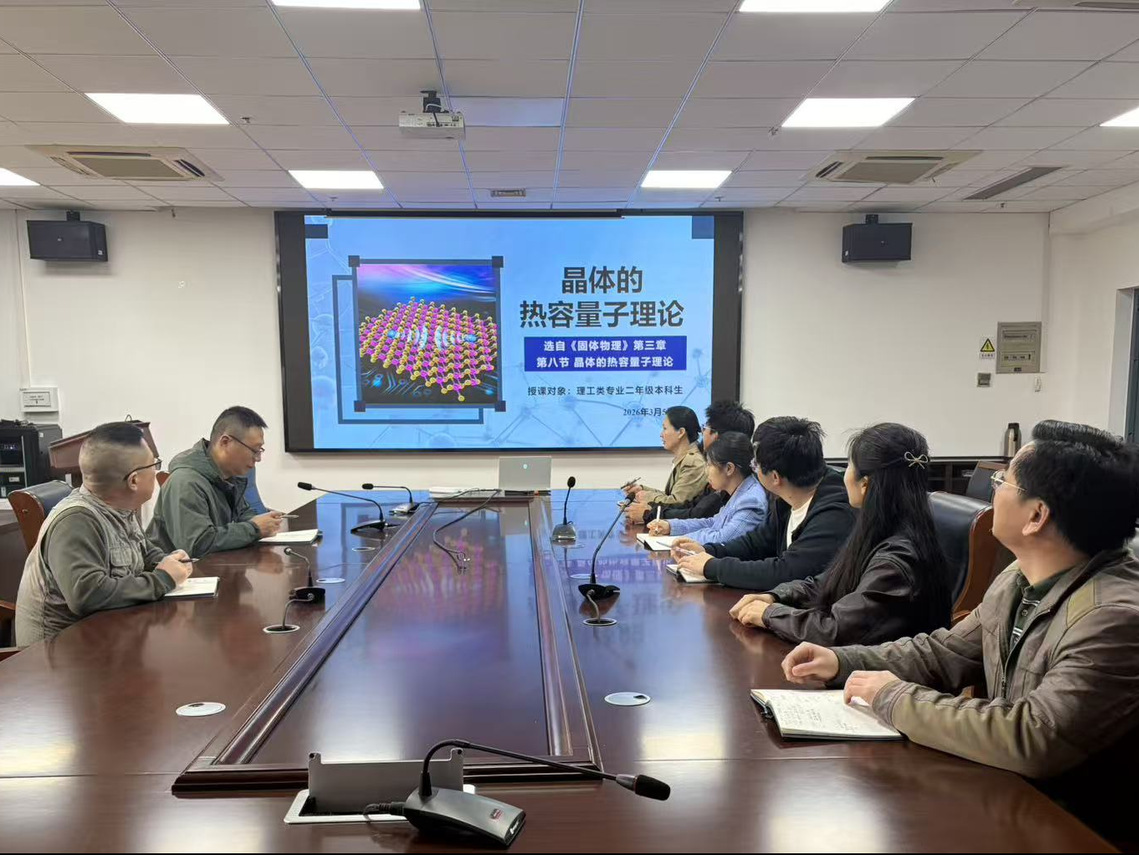 为深入推进课程思政建设,全面提升专业课程育人实效,3月5日,老虎机线上 在《固体物理》课程教学中开展课程思政教学实践。课程负责人尹海宏围绕专业知识与思政元素深度融合,组织课程团队系统设计教学内容,推动构建“知识传授与价值引领相统一”的课堂教学模式。